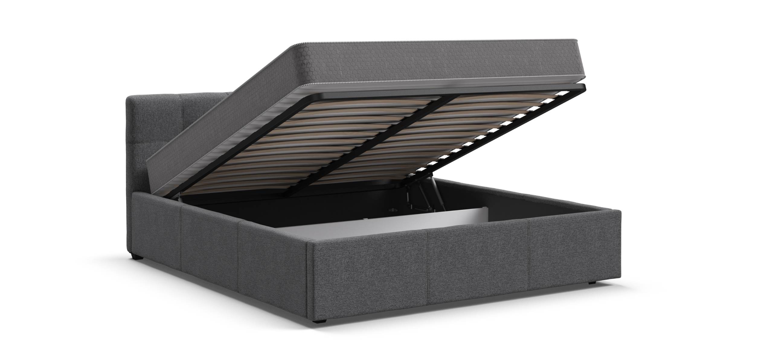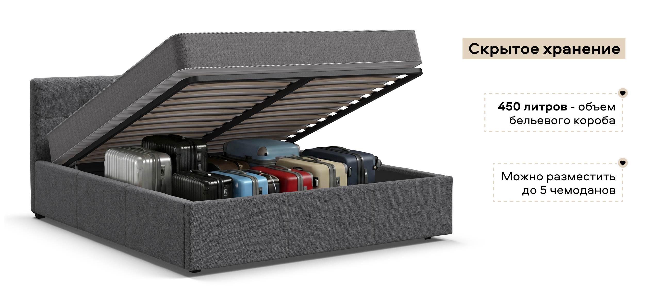 Кровать оборудована декоративными ножками и мягкими углами, что не только придает ей стильный вид, но и обеспечивает безопасность, предотвращая возможные травмы от случайных ударов. Дополнительным преимуществом является наличие бельевого ящика с легко вынимаемым дном, что значительно упрощает процесс влажной уборки.