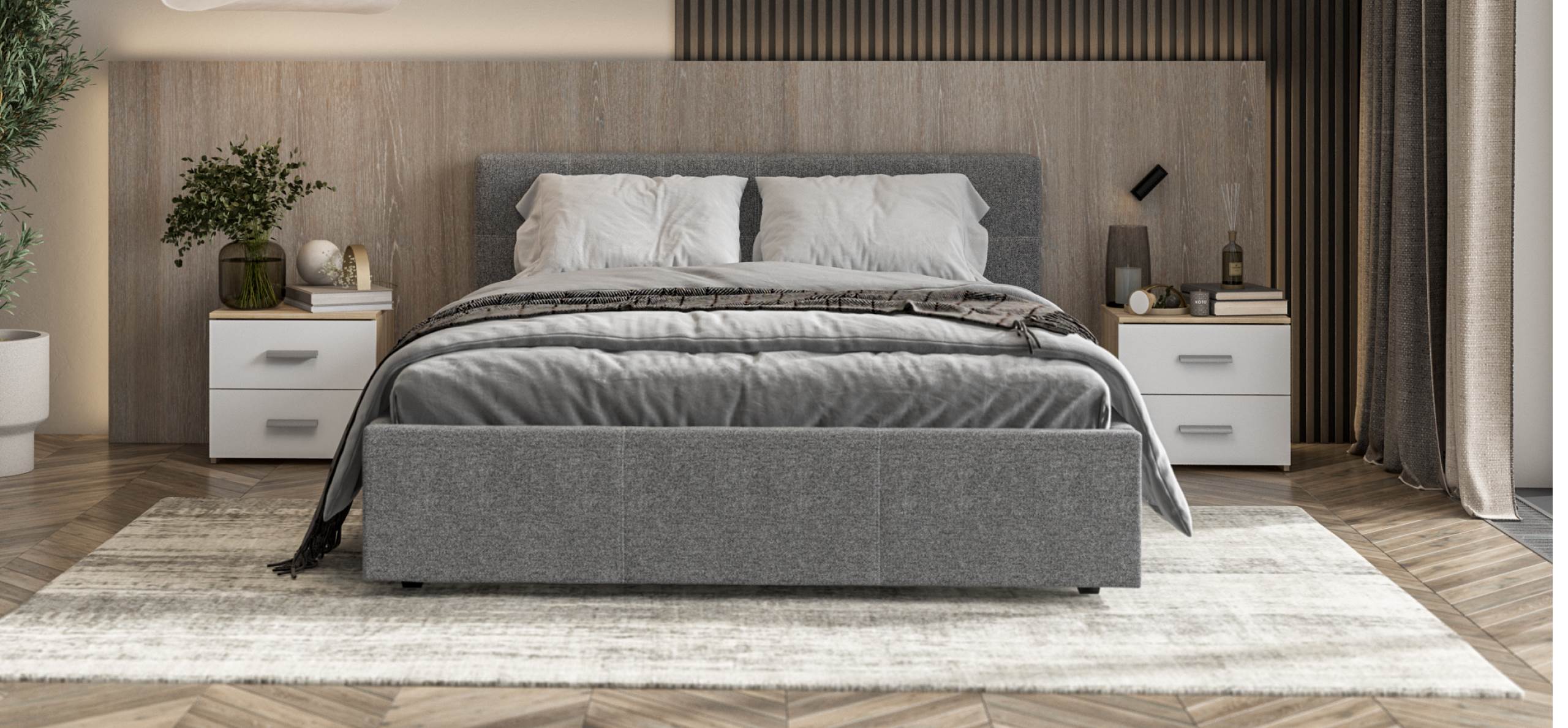 Белла Кровать+ПМ 160*200 Рогожка Мальмо серый