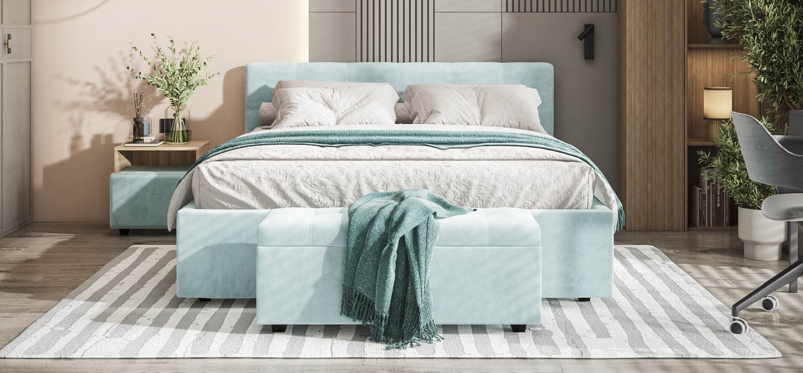 Белла Кровать+ПМ 160*200 велюр Монолит аква