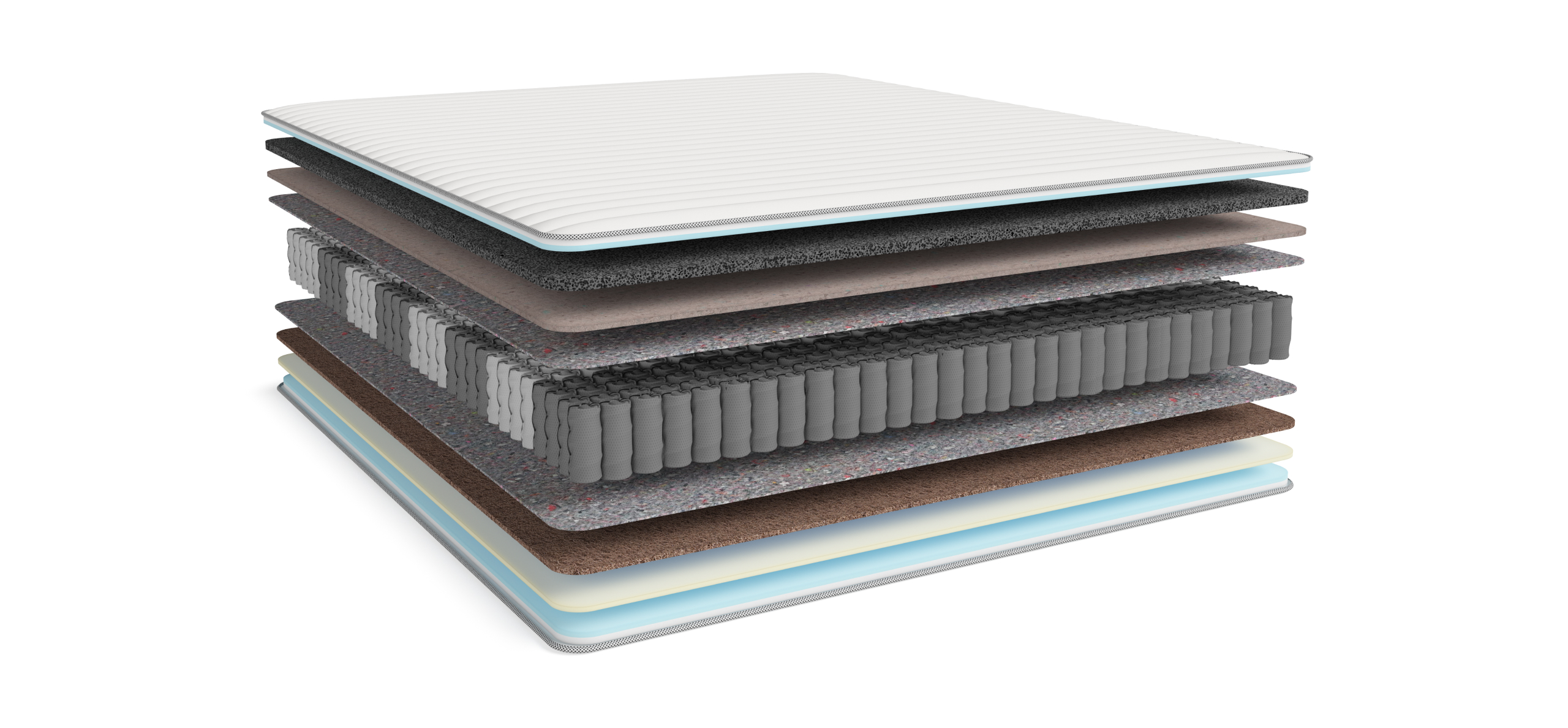 Угольная пена CARBONE FOAM, слой BOSS SKIN, термовойлок, НПБ COMFY SPRING 950, латексированная кокосовая койра, искусственный латекс