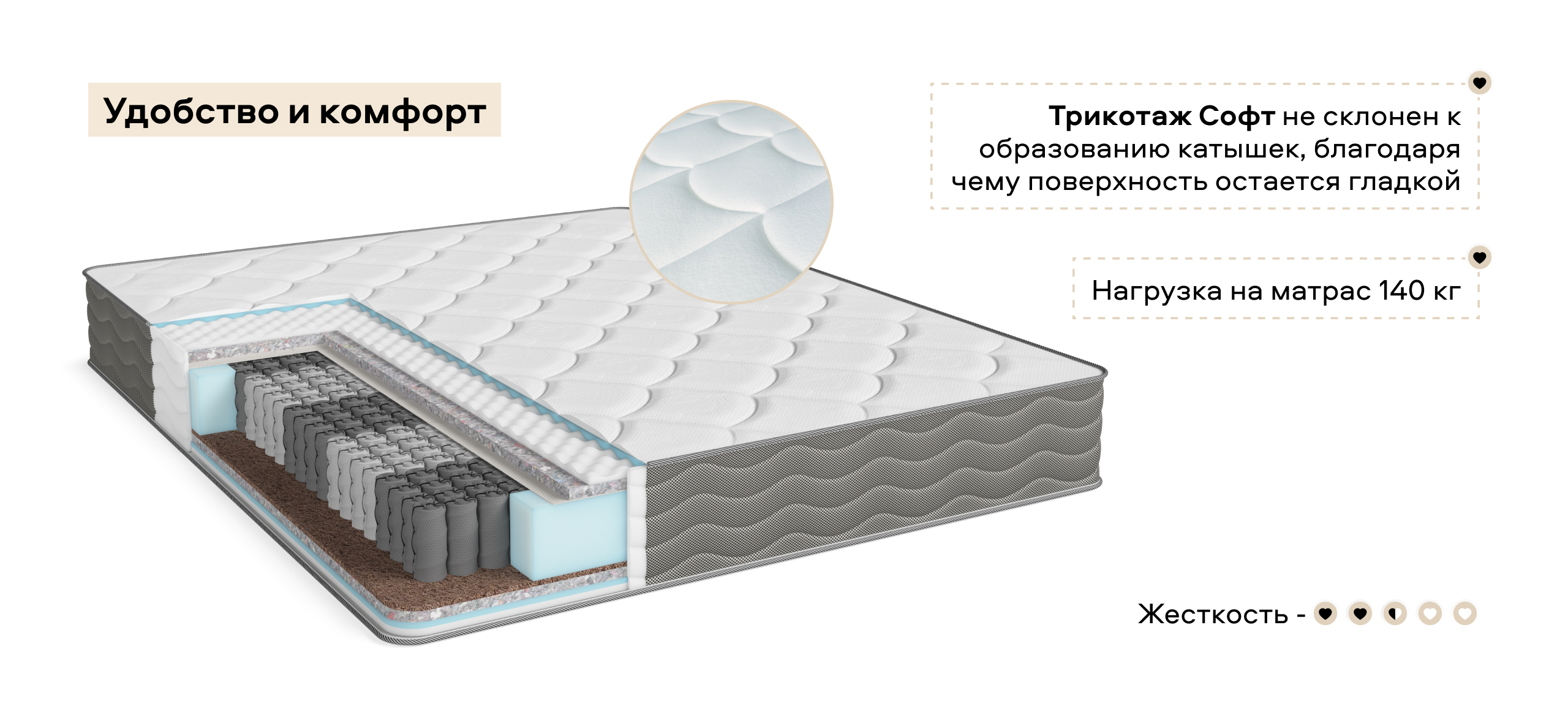 Такой состав продлевает срок службы, и отлично подходит для пар с большой разницей в весе и для любой позы сна.