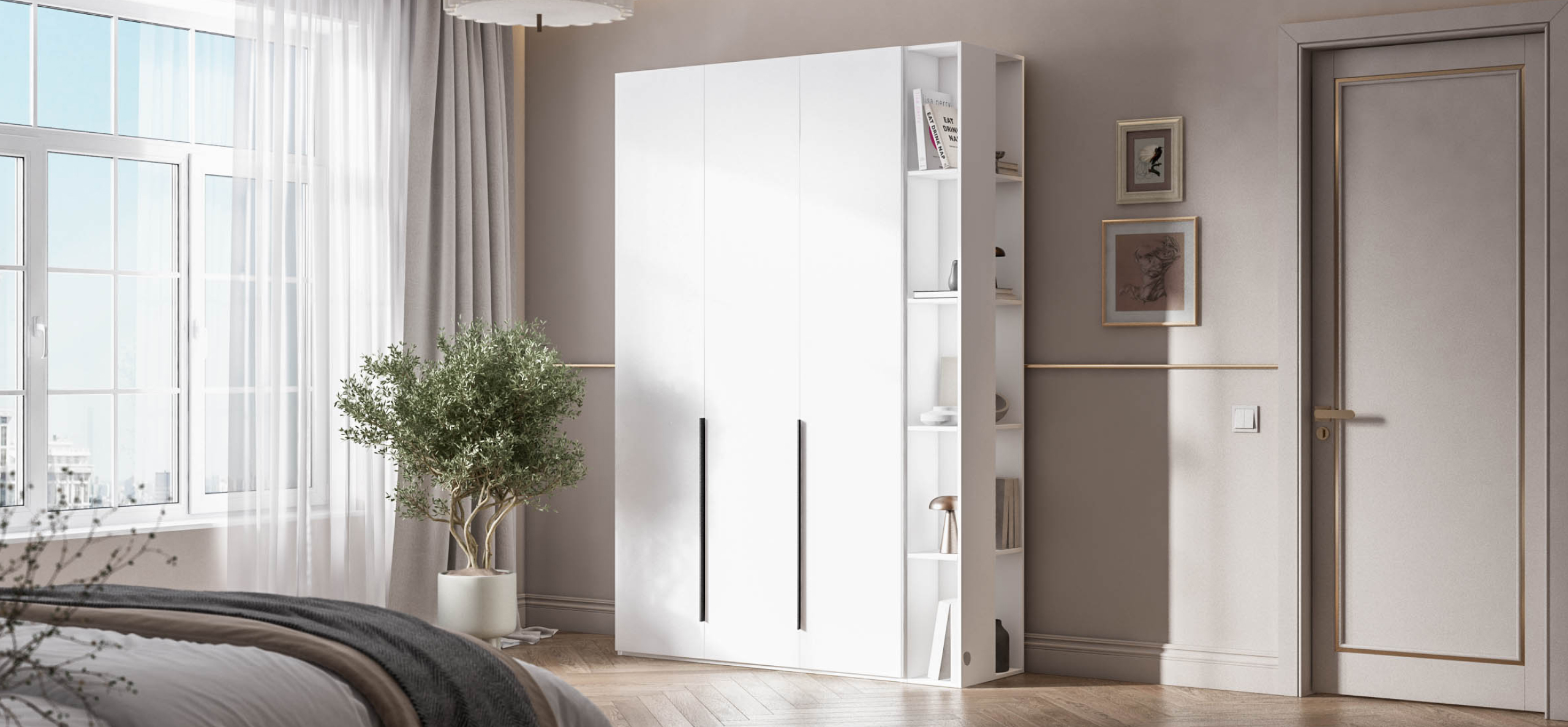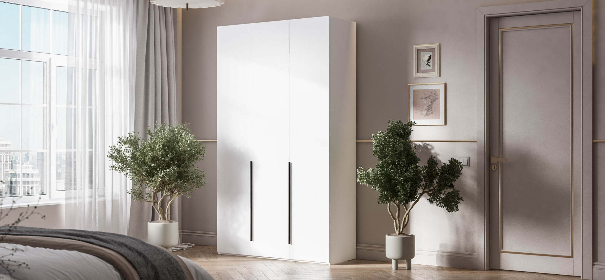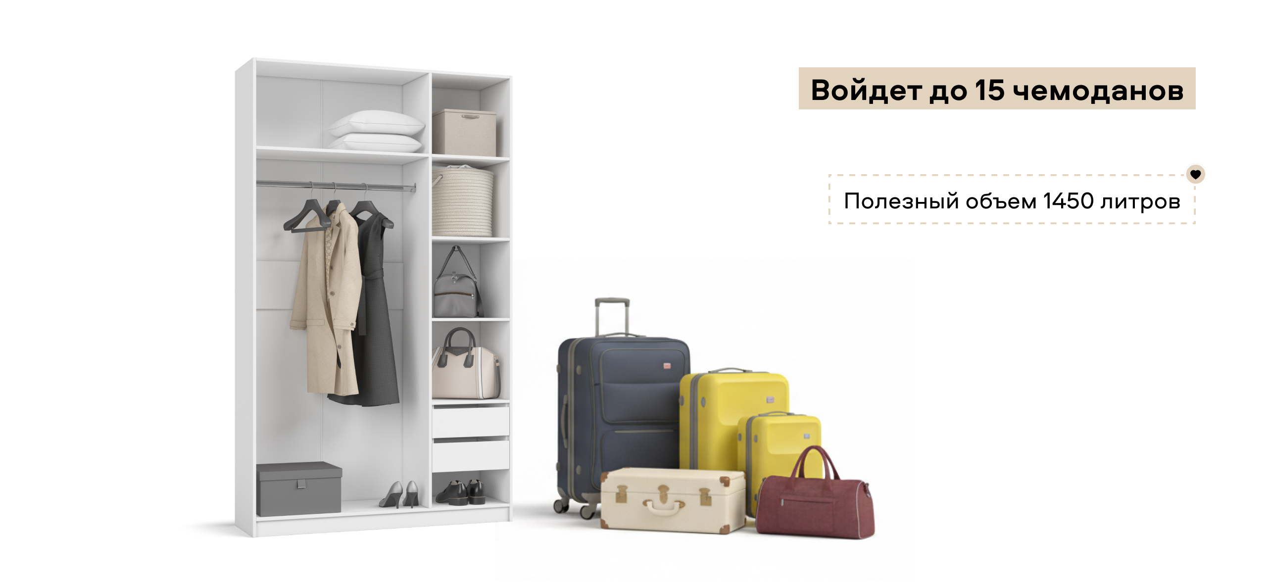 Босс Стандарт 135*236 шкаф распашной 3Д+ящики Белый