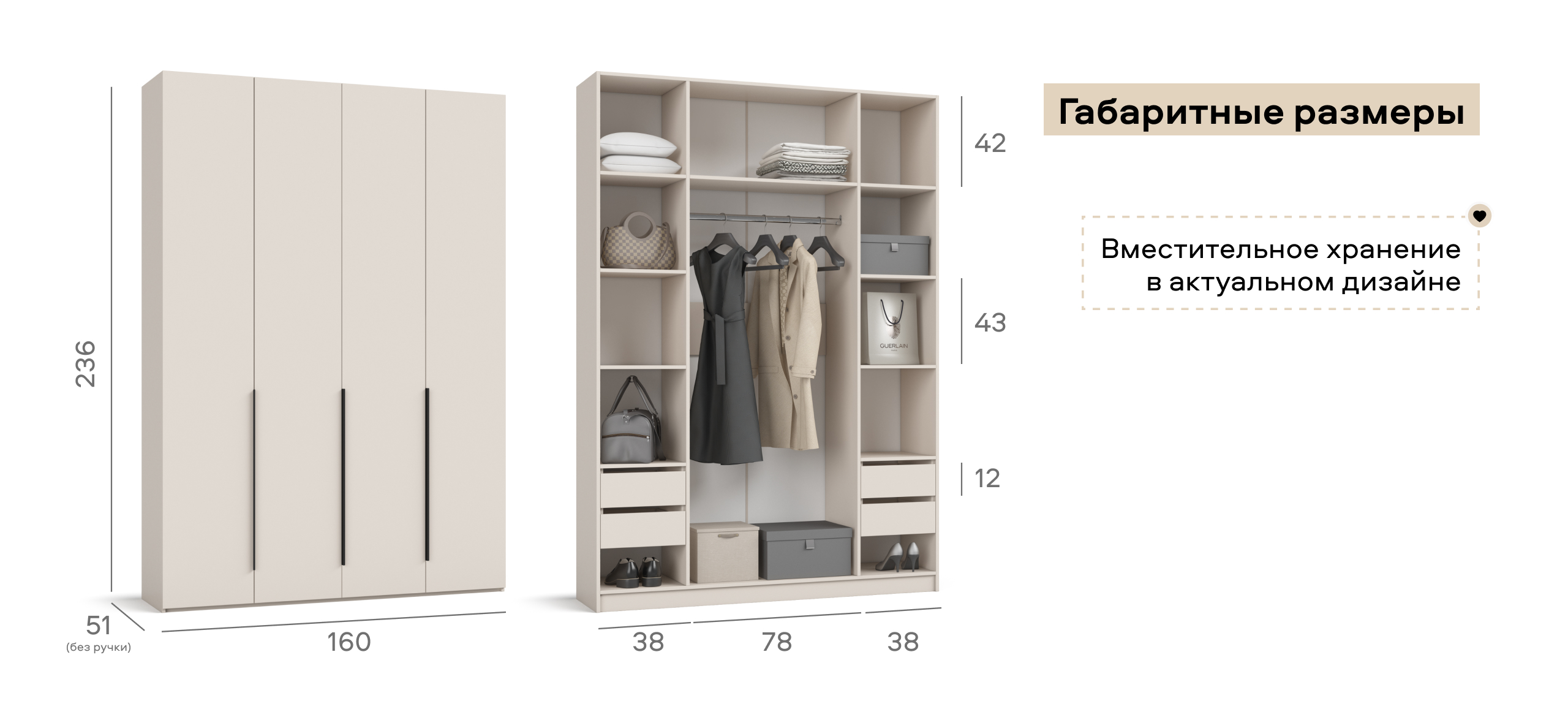 Босс Стандарт 160*236 шкаф распашной 4Д+ящики Кашемир