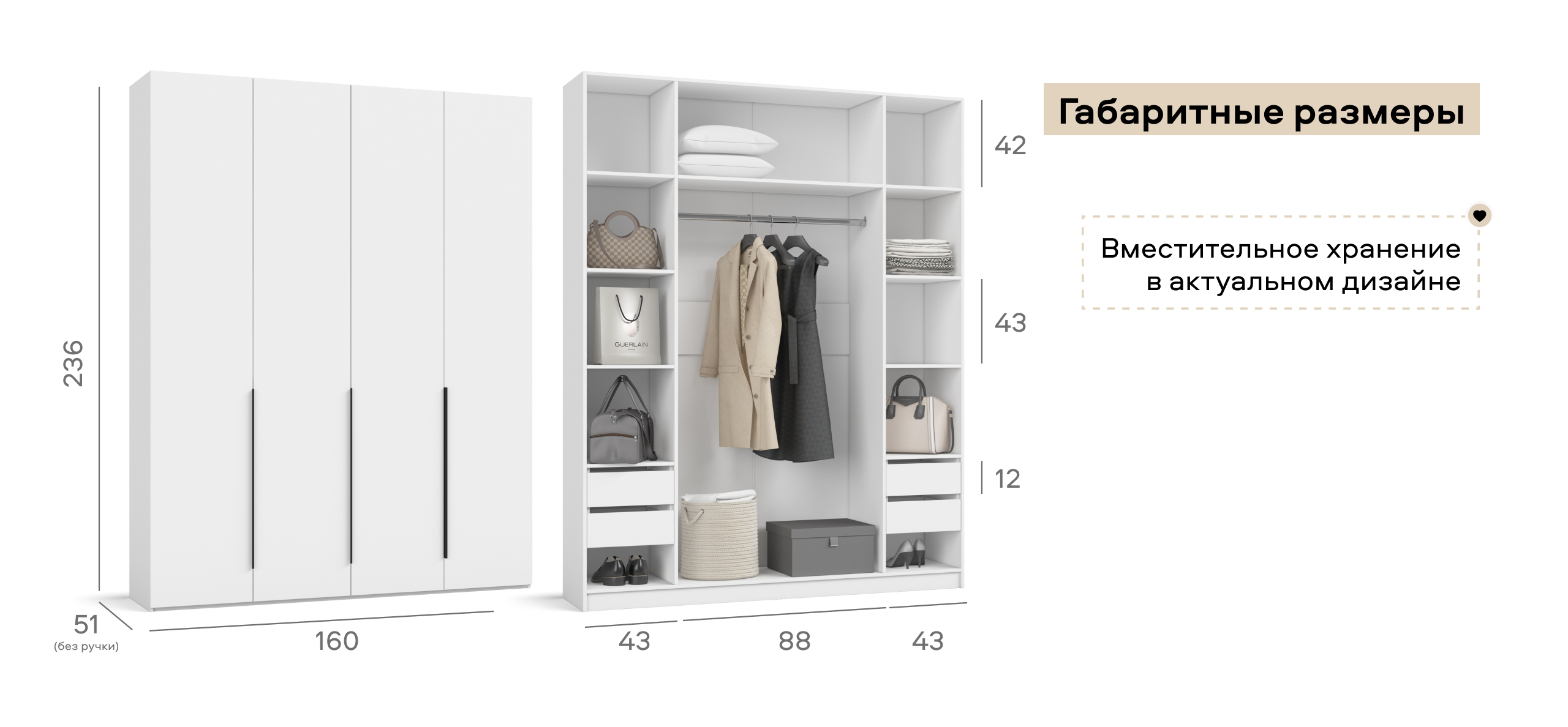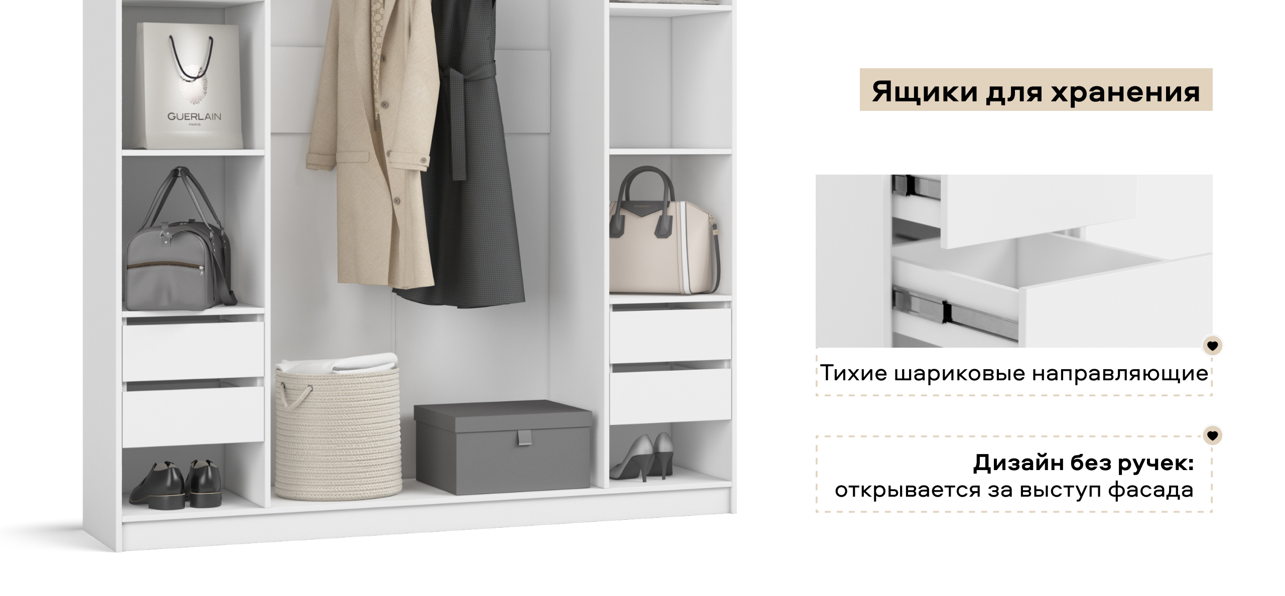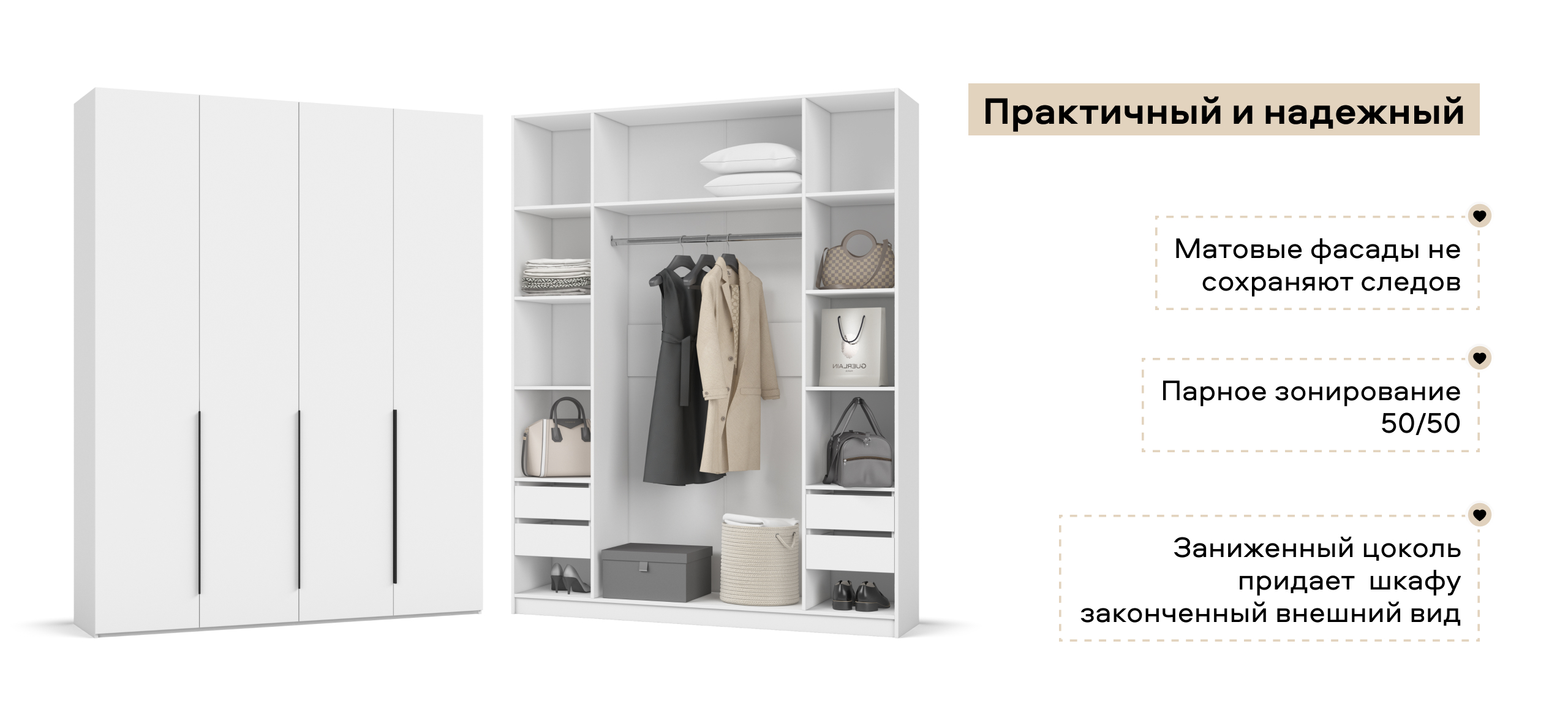 Босс Стандарт 180*236 шкаф распашной 4Д+ящики Белый