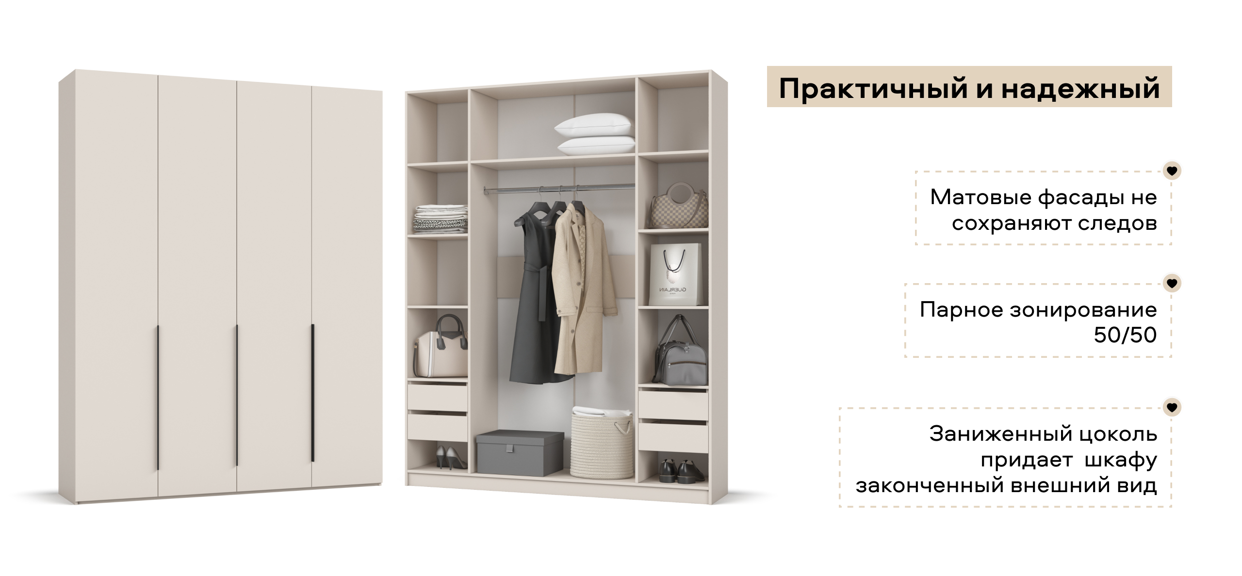 Босс Стандарт 180*236 шкаф распашной 4Д+ящики Кашемир