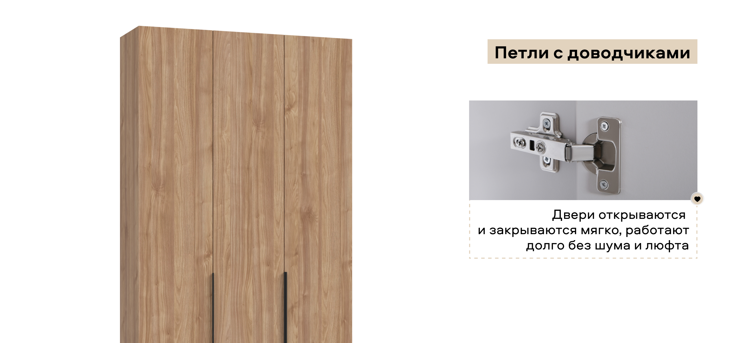 Гибкая конфигурация превращает Босс Стандарт 120 в личный конструктор хранения. Полки и два выдвижных ящика можно установить справа или слева — под планировку и ваши привычки. Двери с доводчиками открываются лёгким движением и закрываются плавно; ящики на шариковых направляющих выдвигаются бесшумно, не прерывая утренний ритм.