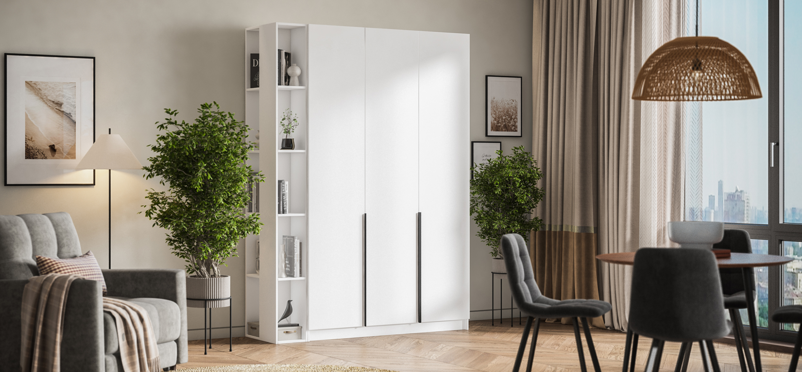 Шкаф Босс Стандарт 135 — современное, статусное решение для городской квартиры: хранить много, занимая минимум места. Лаконичный фасад с вытянутыми чёрными ручками отражает эстетику 2025 года и становится выразительным акцентом любого интерьера — от сканди до неоклассики. Внутри задействован каждый сантиметр: просторное отделение легко принимает сезонный гардероб, коробки с обувью и постельное бельё, сохраняя порядок и освобождая комнату от лишних вещей.
