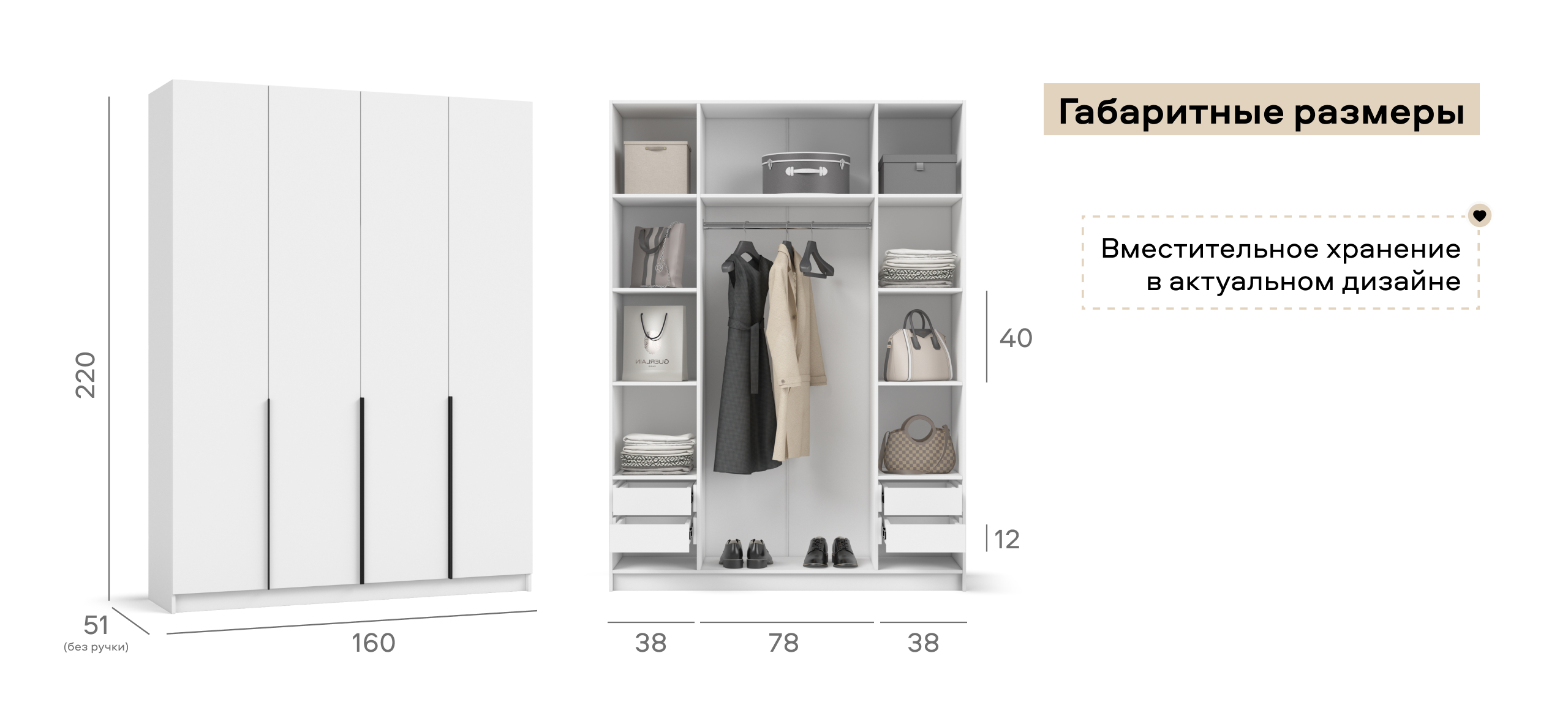 Шкаф Босс Стандарт 160 — масштабное, статусное решение для тех, кто хранит многое и ценит актуальные тренды. Лаконичный фасад с удлинёнными чёрными ручками транслирует эстетику 2025 года и становится выразительным акцентом любой спальни — от сканди до неоклассики. Увеличенная ширина и сбалансированная симметрия позволяют разместить сезонный гардероб, обувные коробки и текстиль, сохраняя ощущение свободного пространства.