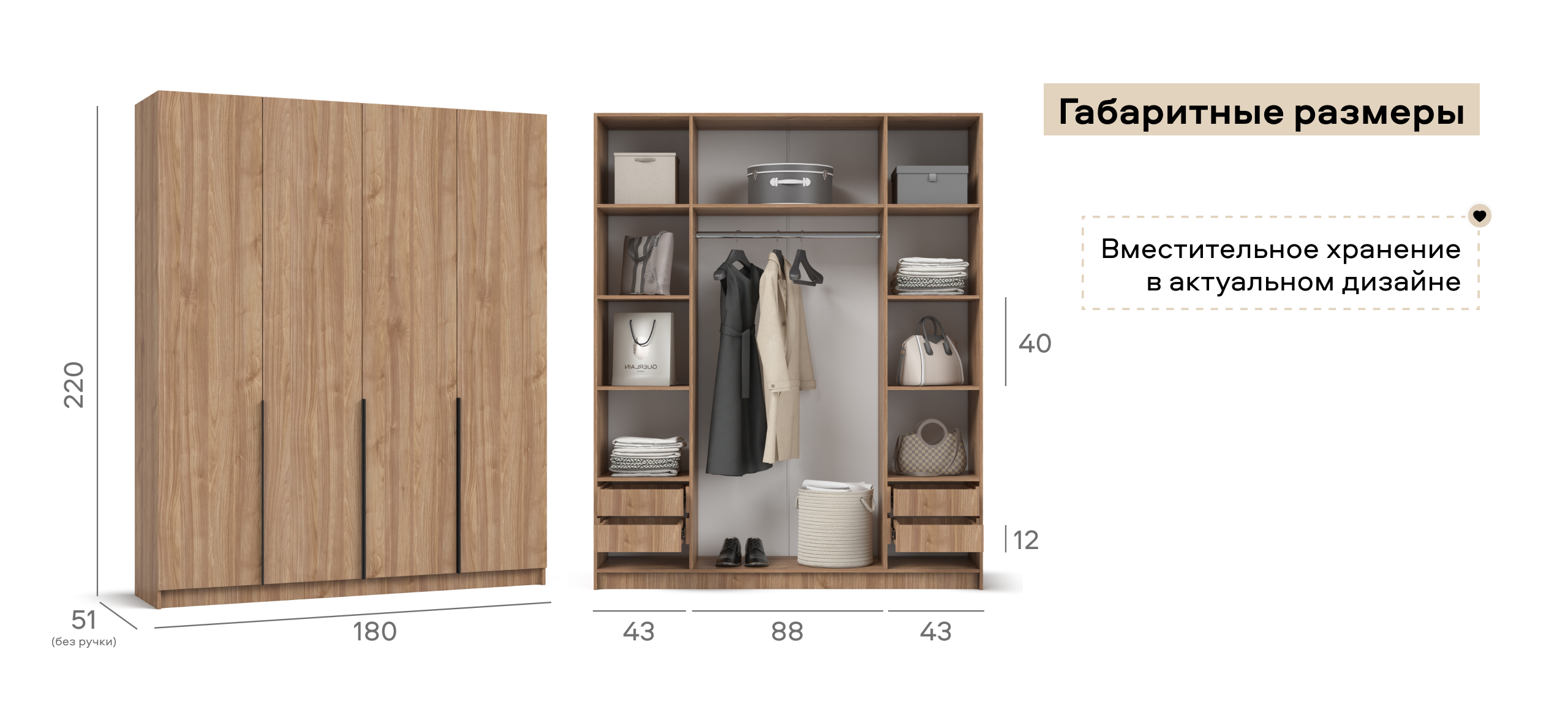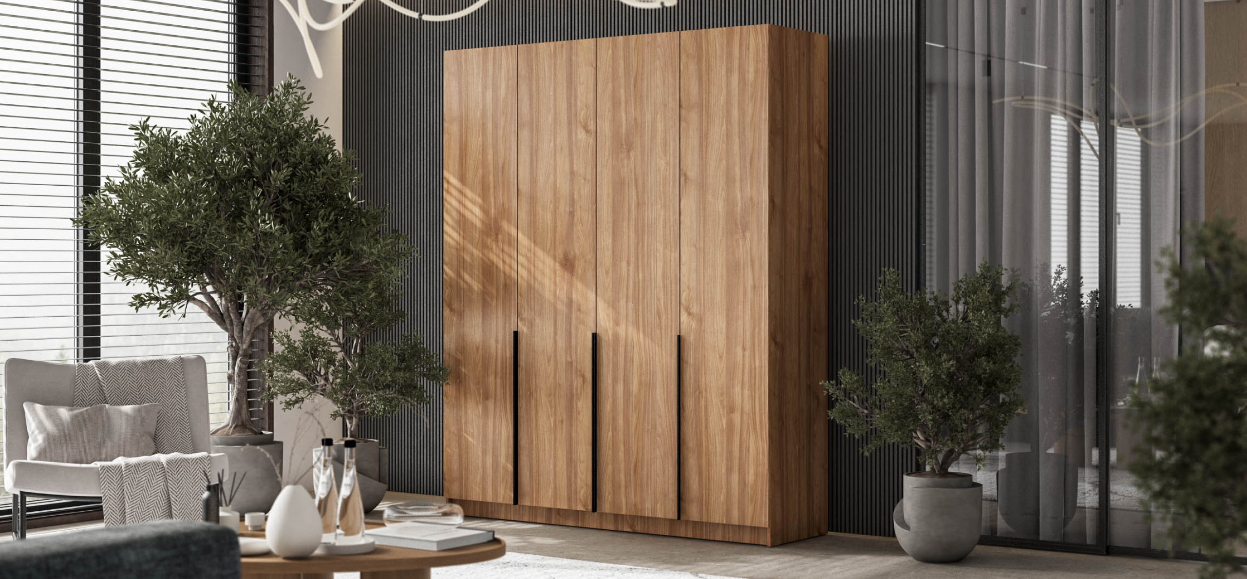 Шкаф Босс Стандарт 180 — масштабное, статусное решение для тех, кто хранит многое и держит интерьер в трендах. Лаконичный фасад с удлинёнными чёрными ручками транслирует эстетику 2025 года и становится выразительным акцентом любой спальни — от сканди до неоклассики. Увеличенная ширина и симметричная конструкция позволяют разместить сезонный гардероб, коробки с обувью и текстиль, сохраняя в комнате больше свободного пространства.