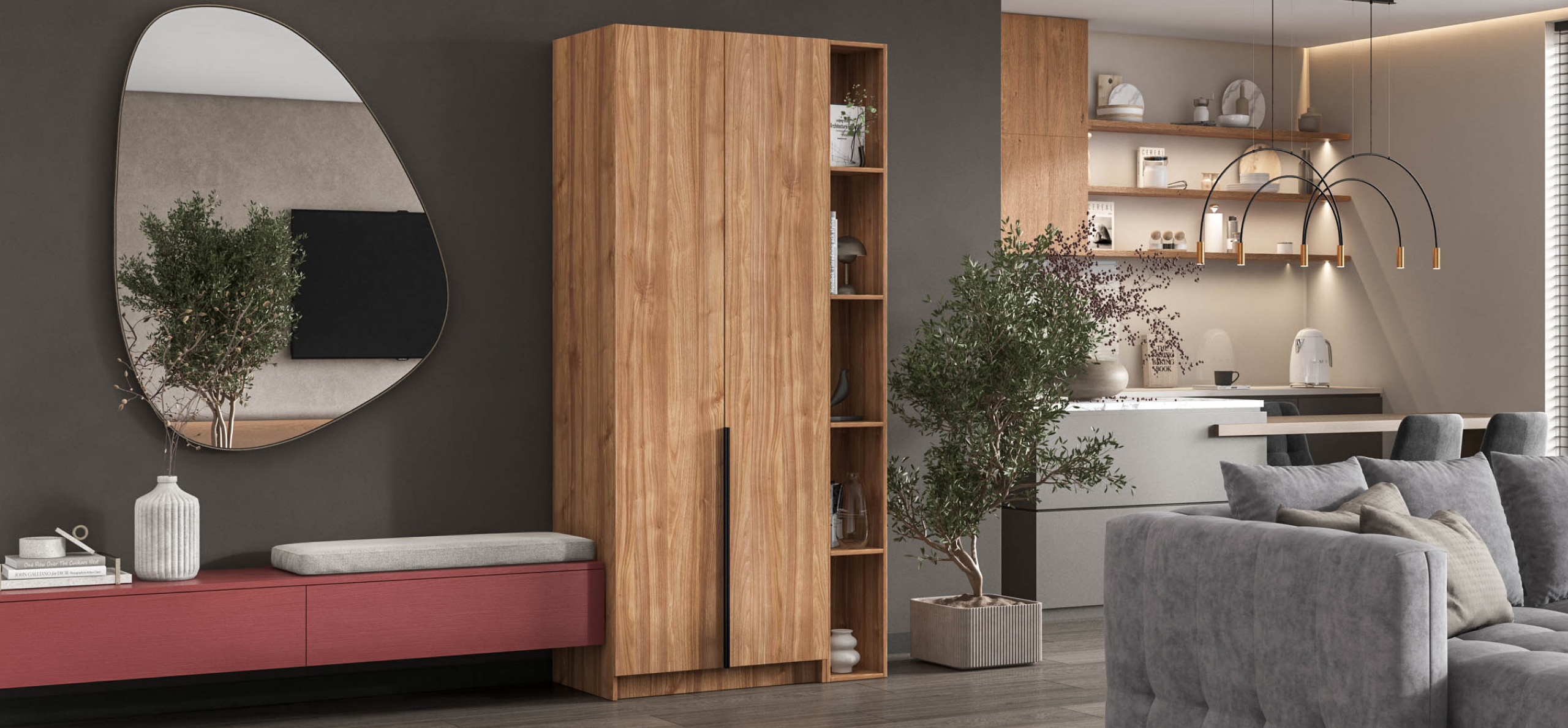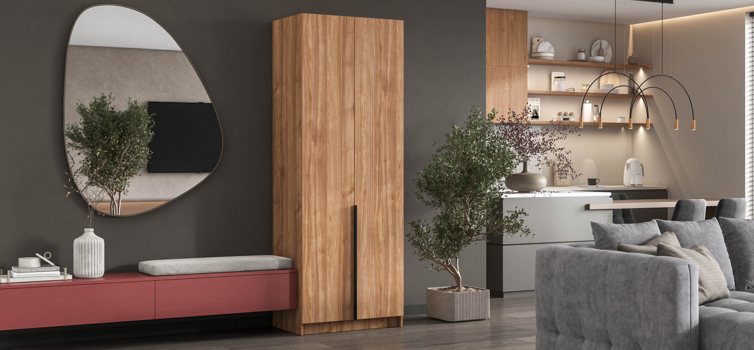 Шкаф Босс Стандарт 80 — компактное, но статусное решение для городской квартиры: хранить всё нужное, оставляя максимум свободного пространства. Лаконичный фасад с удлинёнными чёрными ручками отвечает эстетике 2025 года и становится ярким акцентом любого интерьера — от сканди до неоклассики. Каждый сантиметр внутри задействован: базовый гардероб, коробки с обувью и текстиль размещаются упорядоченно, освобождая комнату от визуального шума.