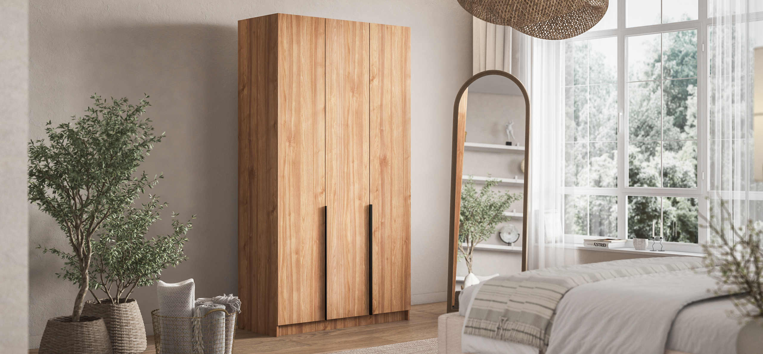 Шкаф Рим 120 — современный ответ на главный запрос городской квартиры: хранить много, занимая мало. Лаконичный фасад с удлинёнными чёрными ручками отсылает к актуальной эстетике 2025 года и делает шкаф ярким акцентом в любом интерьере — от сканди до неоклассики. Внутри продуман каждый сантиметр: просторное отделение легко принимает сезонный гардероб, коробки с обувью и постельное бельё, сохраняя порядок и освобождая комнату от лишних вещей.