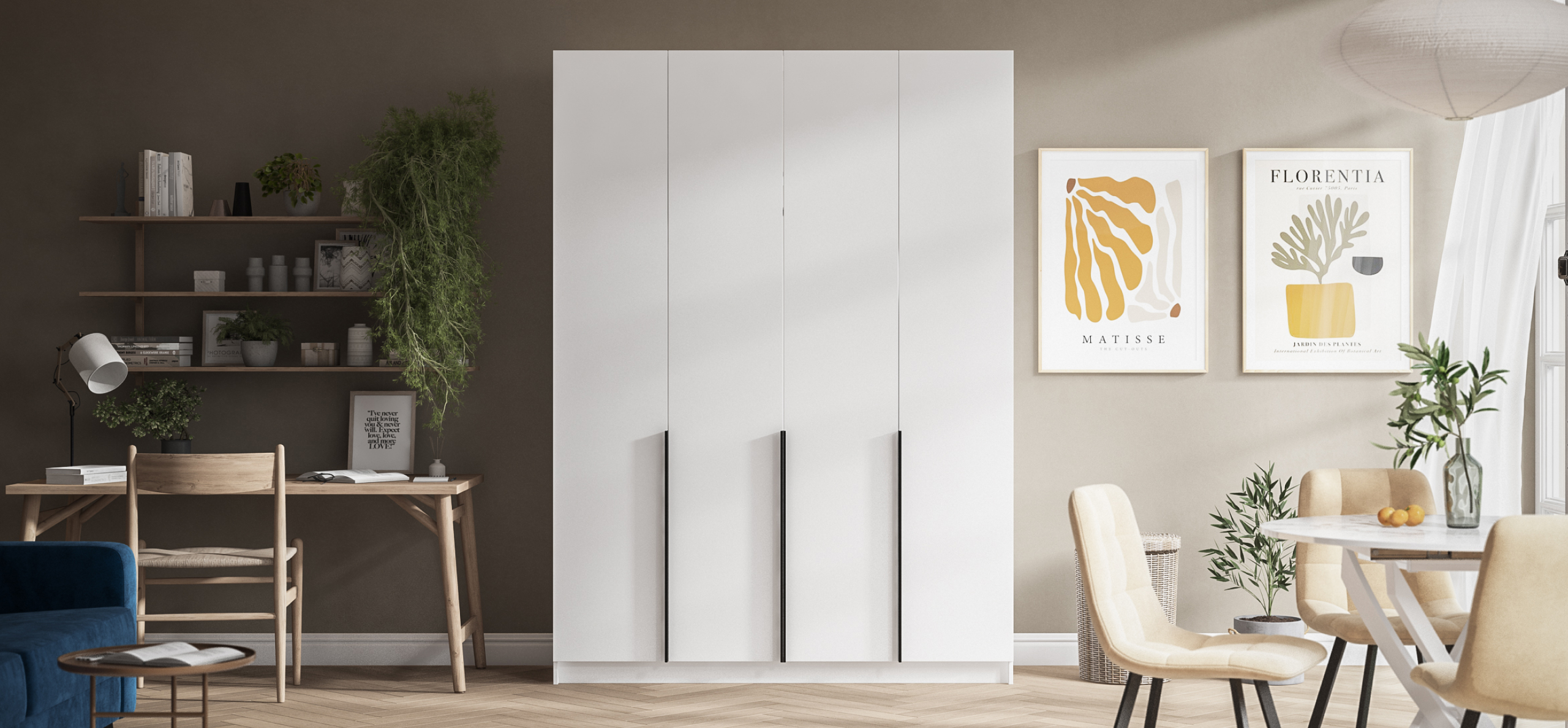 Шкаф Рим 160 — масштабное решение для тех, кто хочет хранить много и держать интерьер в современных трендах. Лаконичный фасад с удлинёнными чёрными ручками отражает эстетику 2025 года и становится выразительным акцентом любой спальни — от сканди до неоклассики. Увеличенная ширина и симметричная конструкция позволяют разместить сезонный гардероб, обувные коробки и текстиль так, чтобы в комнате осталось больше свободного пространства.