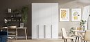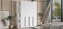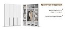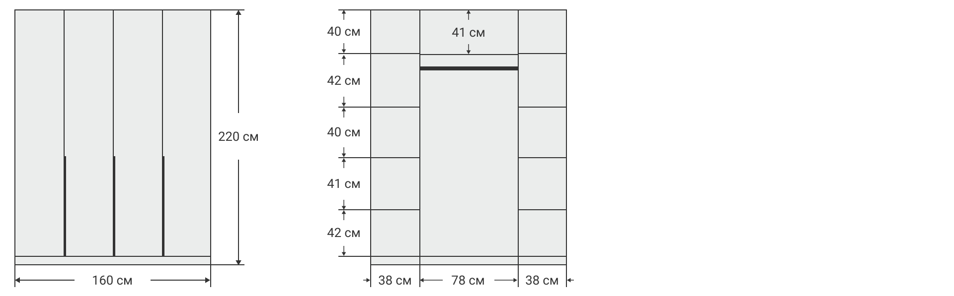 По бокам — две симметричные секции с полками на всю высоту, а в центре — штанга для длинной одежды. Такая компоновка экономит время на поиск вещей и избавляет от необходимости выбирать, какая сторона «главная». Полки выдерживают серьёзную нагрузку, а створки открываются плавным движением, не нарушая утренний ритм.