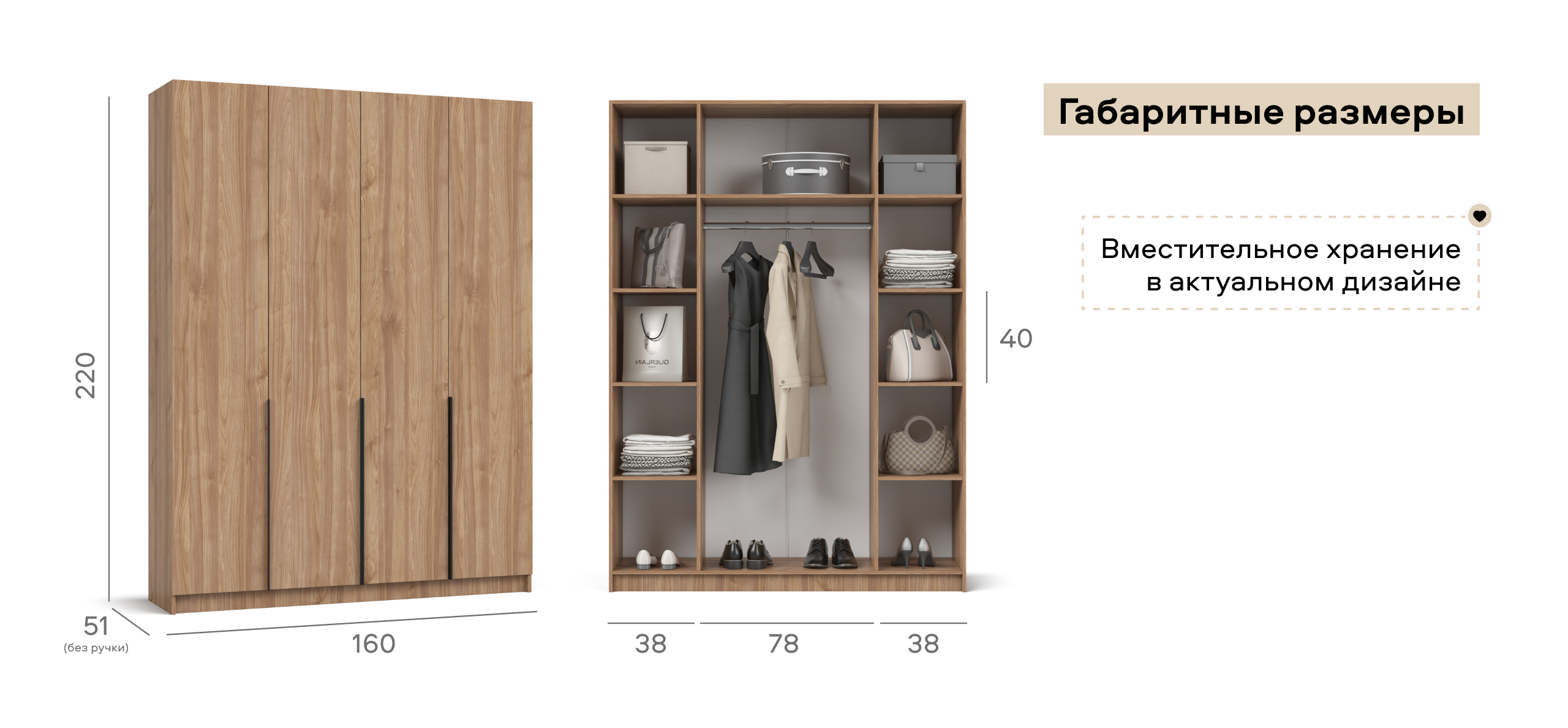 Корпус изготовлен из безопасной ЛДСП класса Е1 с износостойким покрытием, чтобы фактура и цвет радовали долгие годы. Рим 160 даёт ощущение простора и упорядоченности, превращая спальню или гостевую комнату в гармоничное, «дышащее» пространство. Выберите шкаф, который не просто хранит вещи, а задаёт стильный порядок в вашей жизни.