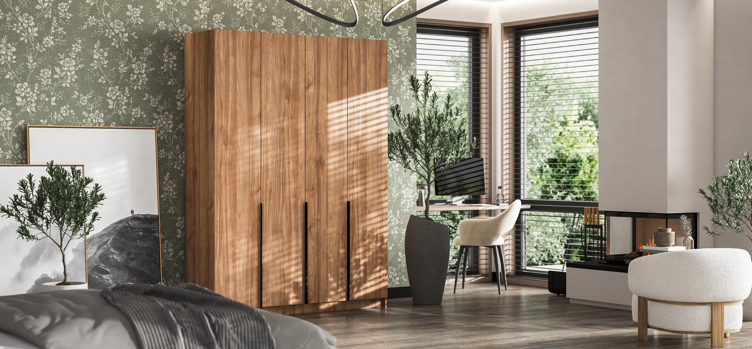 Шкаф Рим 160 — масштабное решение для тех, кто хочет хранить много и держать интерьер в современных трендах. Лаконичный фасад с удлинёнными чёрными ручками отражает эстетику 2025 года и становится выразительным акцентом любой спальни — от сканди до неоклассики. Увеличенная ширина и симметричная конструкция позволяют разместить сезонный гардероб, обувные коробки и текстиль так, чтобы в комнате осталось больше свободного пространства.