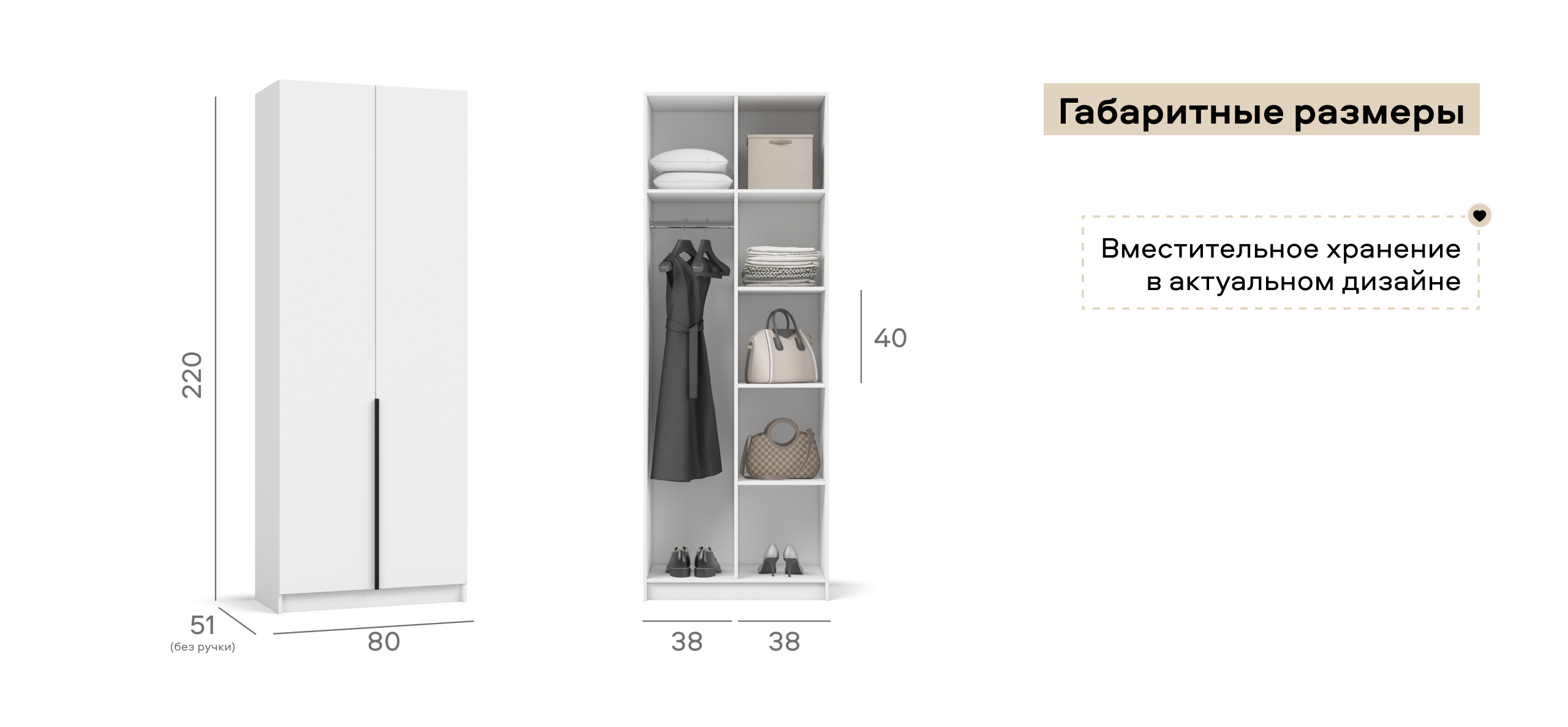 Шкаф Рим 80 — компактный ответ на главный запрос городской квартиры: хранить нужное, сохраняя максимум свободного пространства. Лаконичный фасад с удлинёнными чёрными ручками отсылает к актуальной эстетике 2025 года и делает шкаф ярким акцентом любого интерьера — от сканди до неоклассики. Внутри продуман каждый сантиметр: аккуратное отделение легко принимает базовый гардероб, коробки с обувью и текстиль, поддерживая порядок и избавляя комнату от лишних вещей.