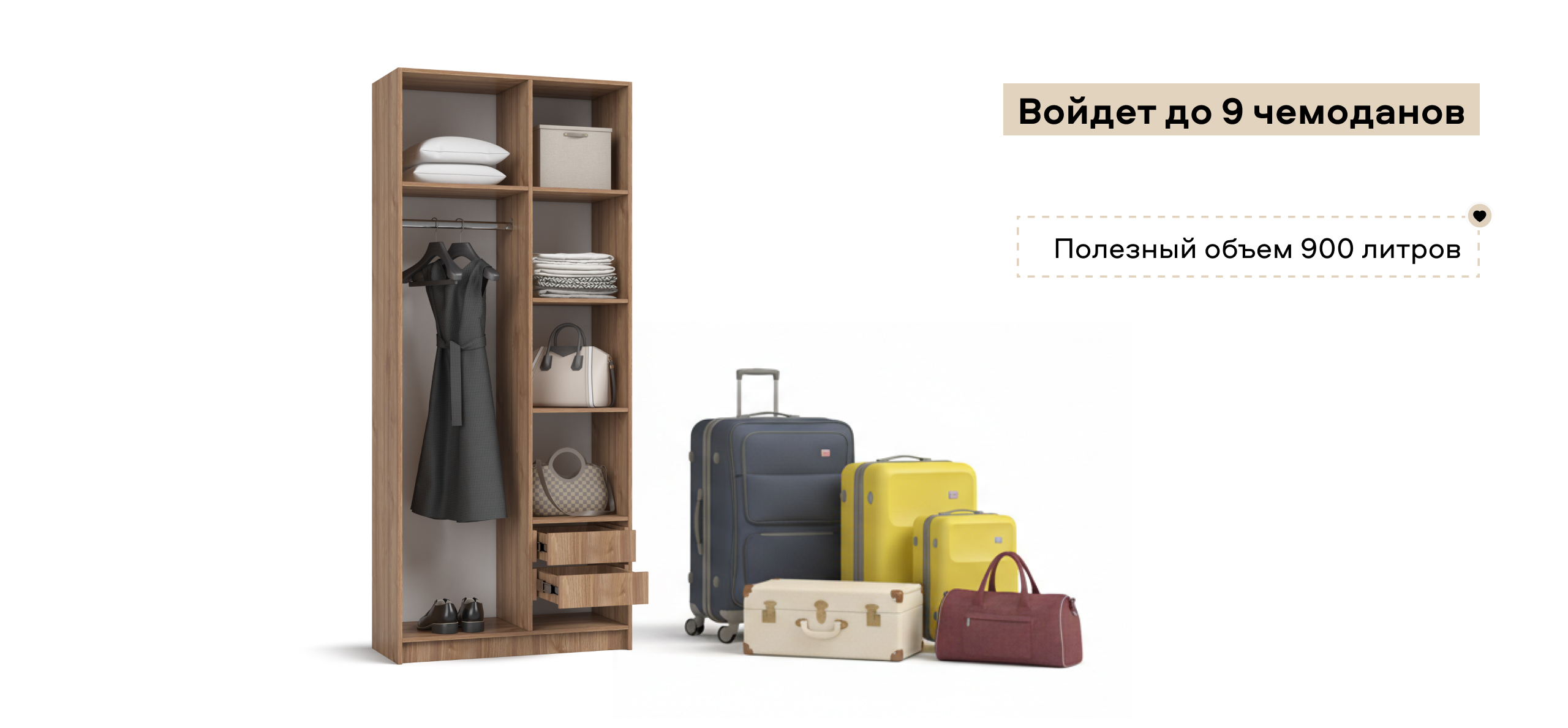 Полки и ящики можно установить с любой стороны — справа или слева. Шкаф адаптируется под вашу планировку и привычки, обеспечивая комфорт в использовании