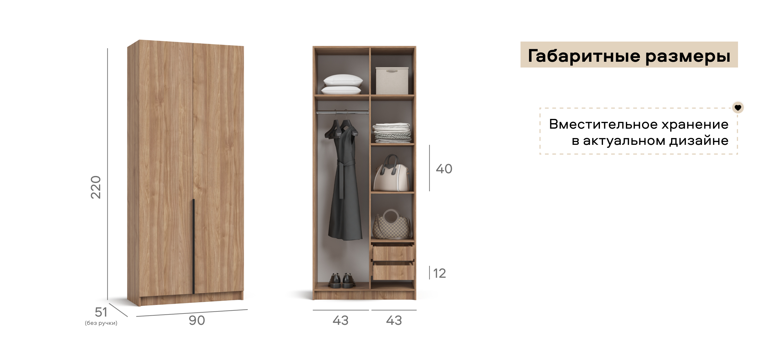 Шкаф Рим 90 — компактный ответ на запрос городской квартиры: хранить всё необходимое, экономя пространство. Лаконичный фасад с удлинёнными чёрными ручками поддерживает эстетику 2025 года и делает шкаф заметным акцентом любого интерьера — от сканди до неоклассики. Несмотря на скромную ширину, продуманное отделение легко принимает базовый гардероб, аккуратные коробки с обувью и текстиль, помогая сохранить порядок и освободить комнату от лишних вещей.