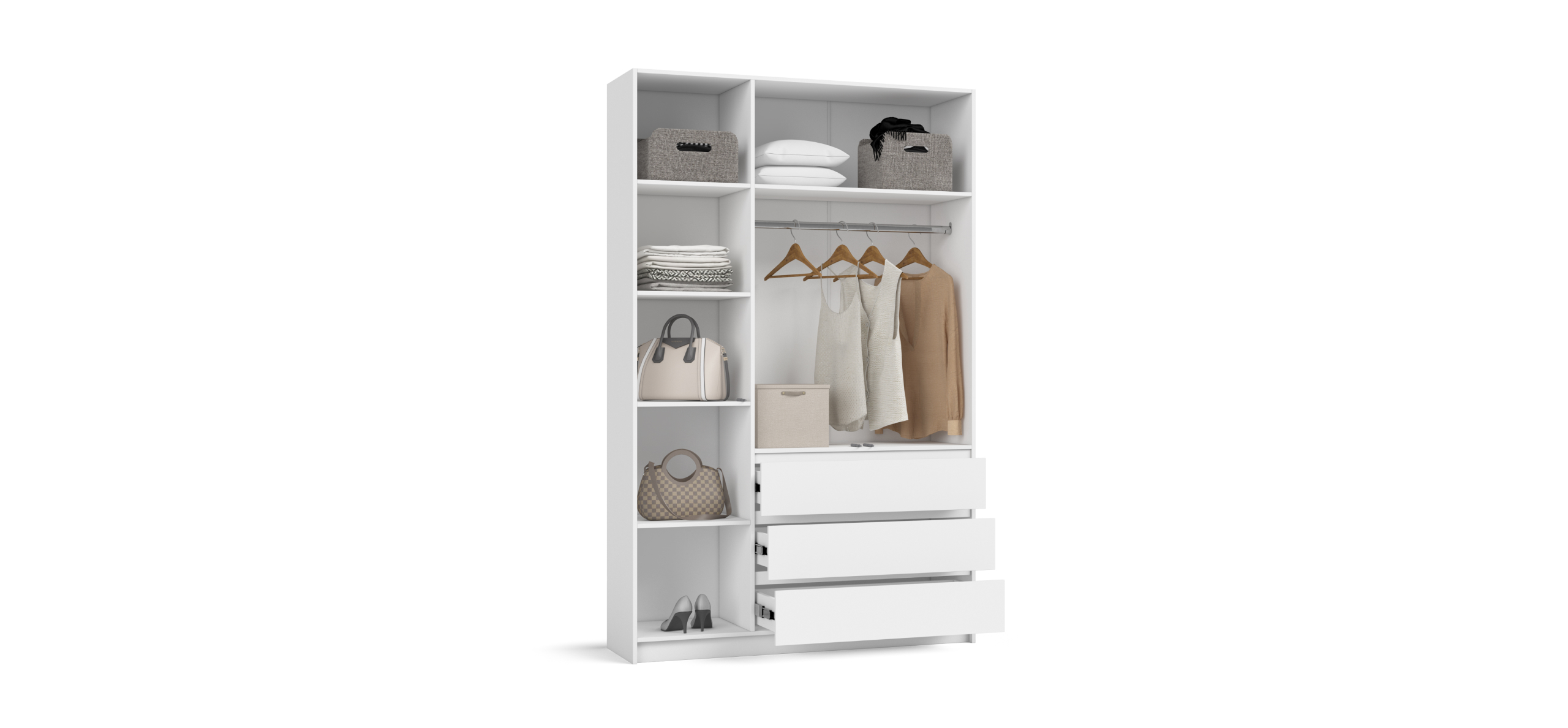 Идея 135 шкаф распашной 3Д+ящики Белый