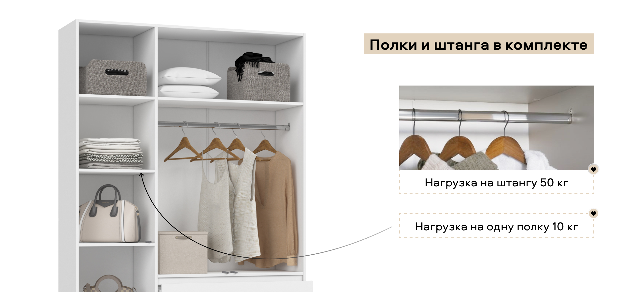 Два оттенка — тёплый Кашемир и светлый Белый — легко встраиваются в сценарии современной квартиры: от спокойного минимализма до мягкой неоклассики. Итог — ощущение упорядоченности и воздуха, когда всё на своём месте и всё под рукой.