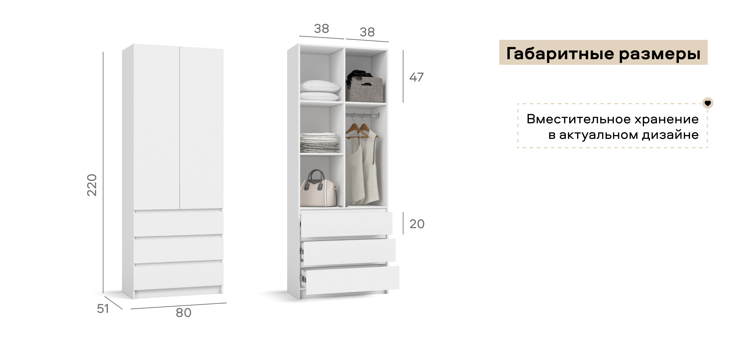 Идея 80 шкаф распашной 2Д+ящики Белый