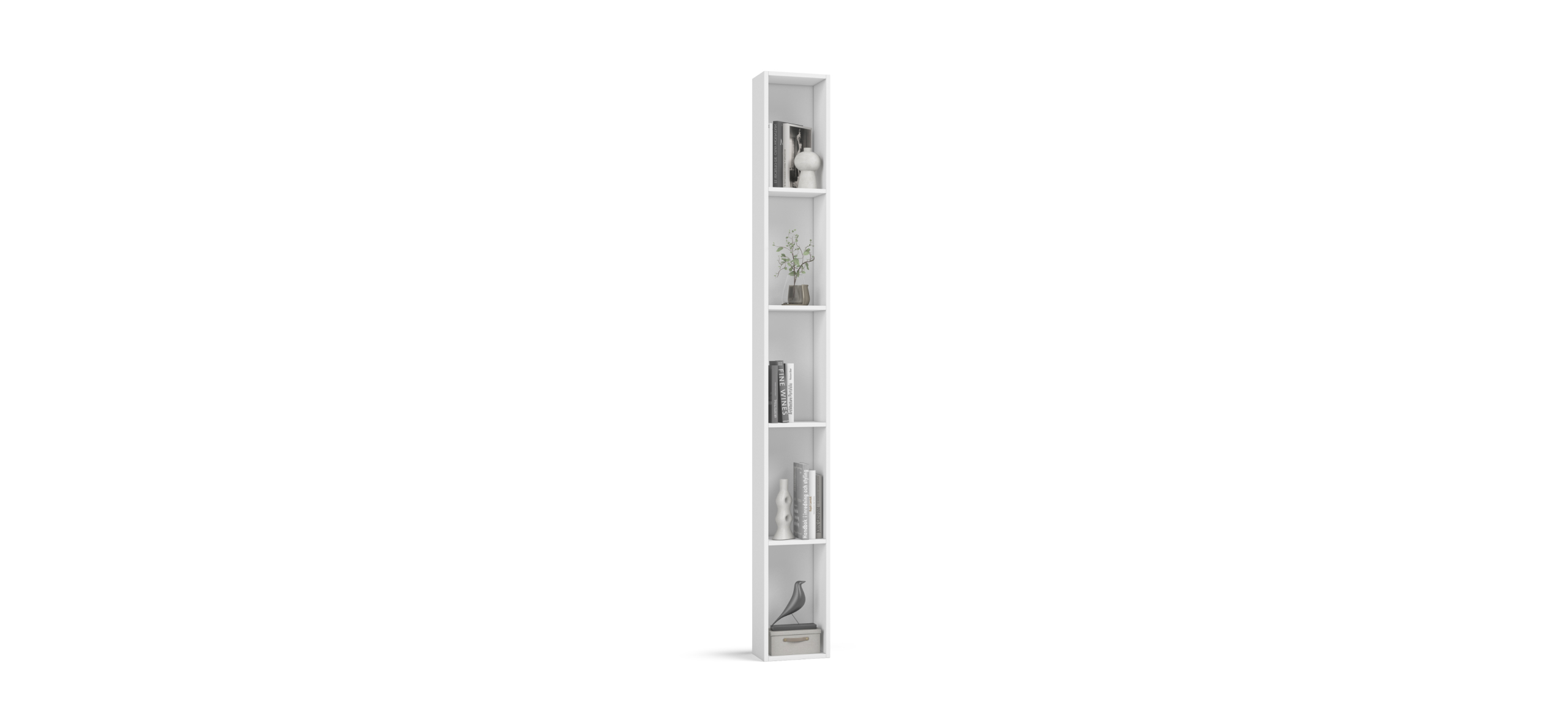 Открытые полки дают свободу сценариев: создайте компактную библиотеку, расставьте декор или смешайте книги с уютными акцентами, чтобы подчеркнуть настроение комнаты.