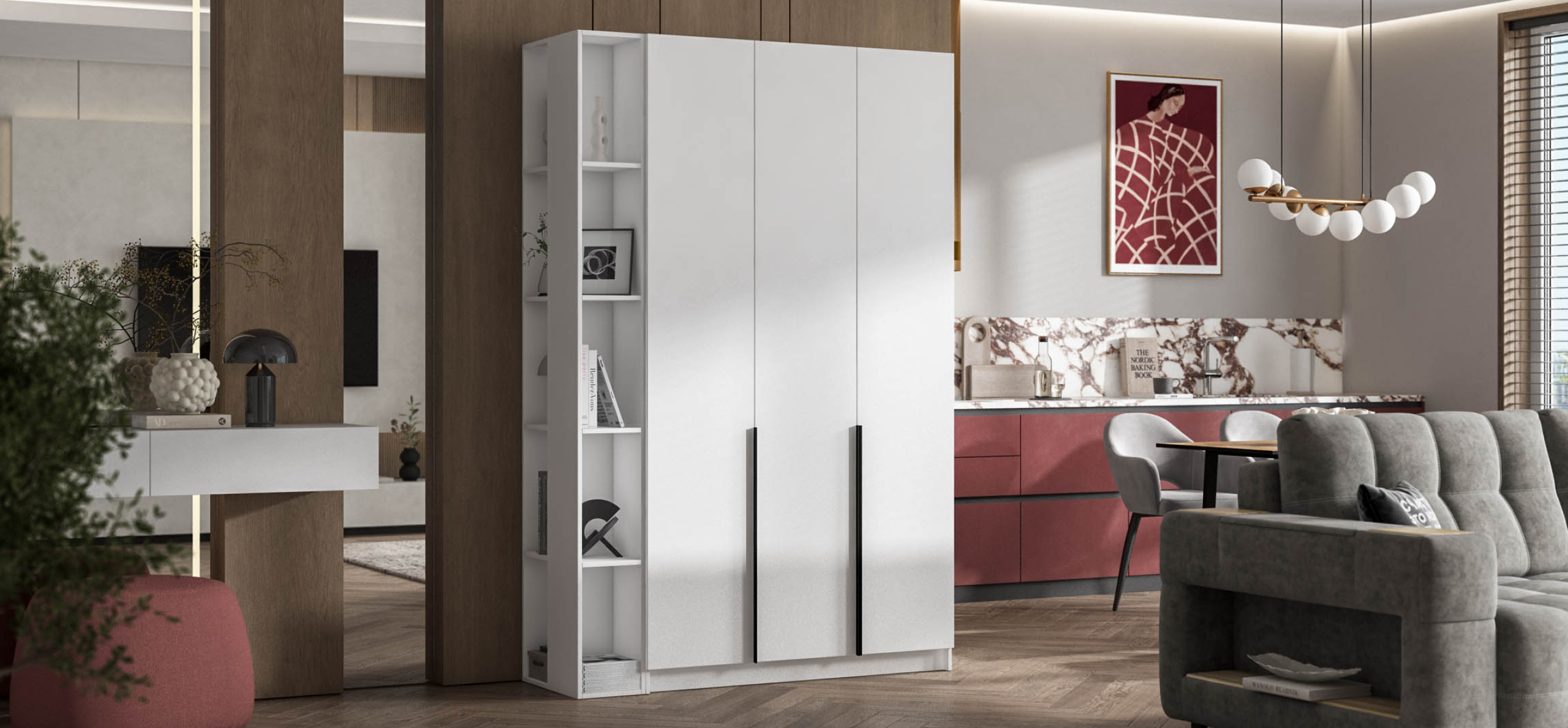 Модульное решение расширяет систему хранения без увеличения глубины и визуального веса, завершая композицию и придавая интерьеру законченный, гармоничный вид.