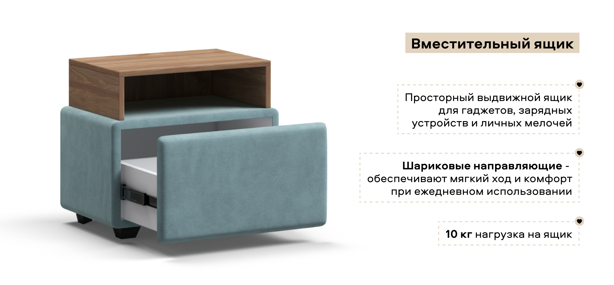 Тумба Босс – разрушает стереотипы о прикроватной мебели! Кто сказал, что она не может быть мягкой? Выдвижной ящик с дополнительной полкой помогут держать самое необходимое под рукой, а мягкая поверхность подарит настоящий домашний уют.