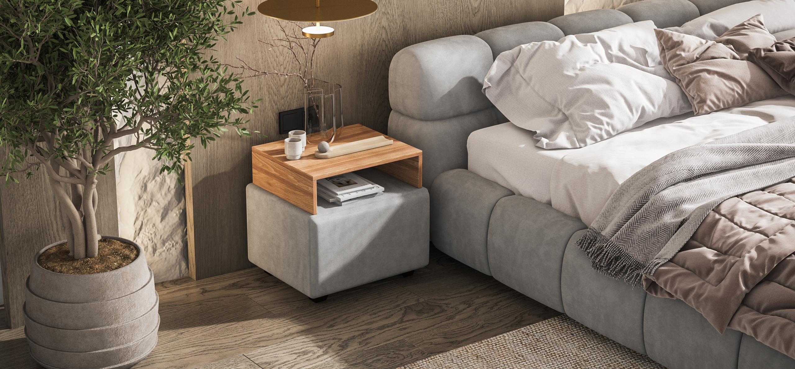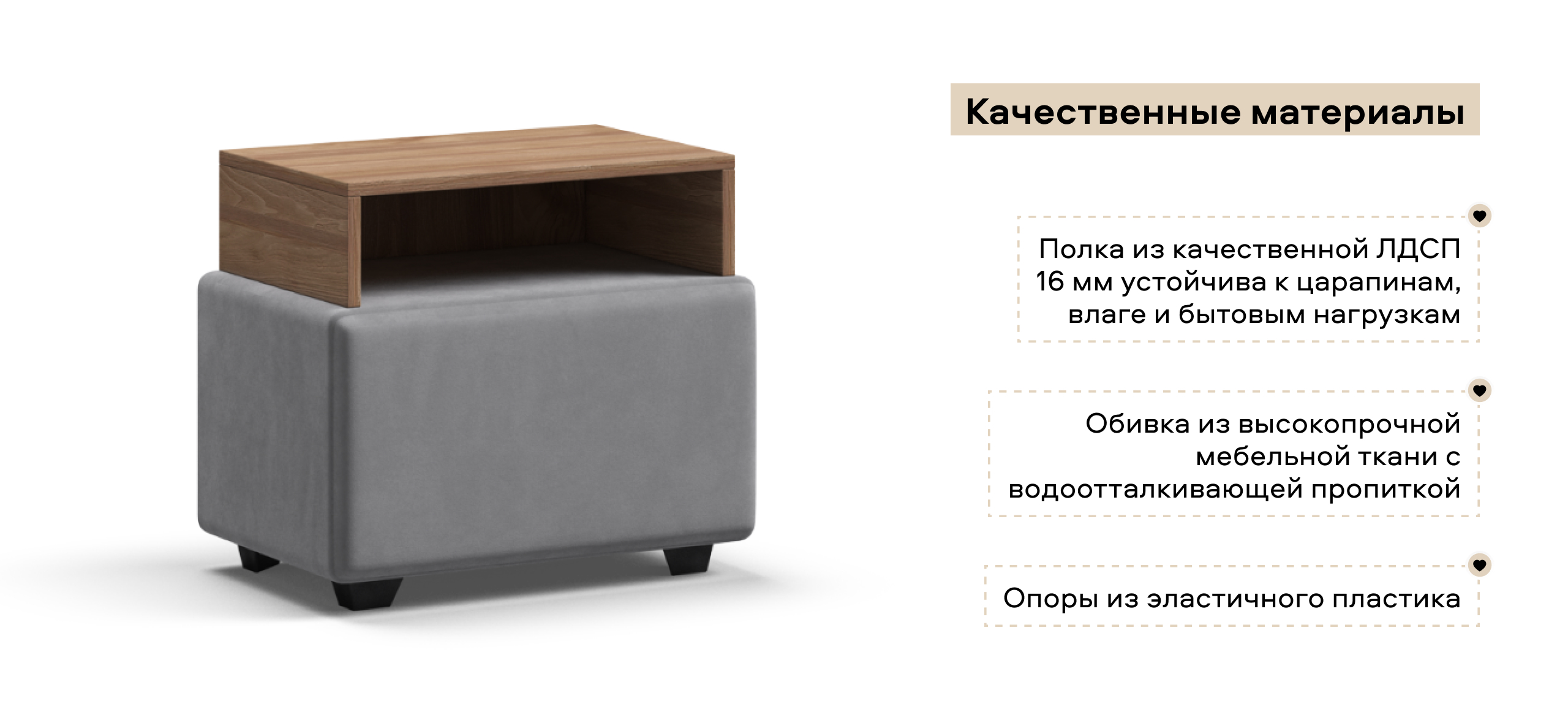 Тумба Босс – разрушает стереотипы о прикроватной мебели! Кто сказал, что она не может быть мягкой? Выдвижной ящик с дополнительной полкой помогут держать самое необходимое под рукой, а мягкая поверхность подарит настоящий домашний уют.